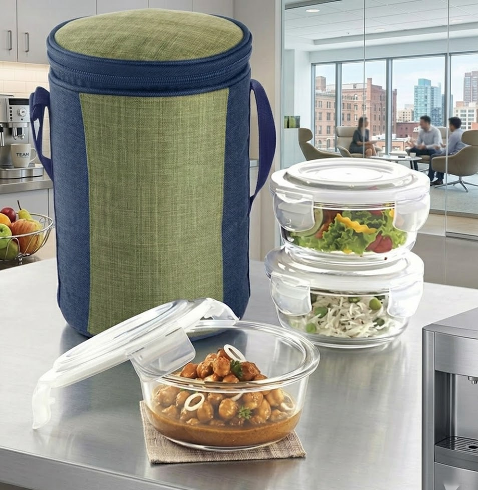 GLASS LUNCH BOX SET WITH INSULATED CARRY BAG