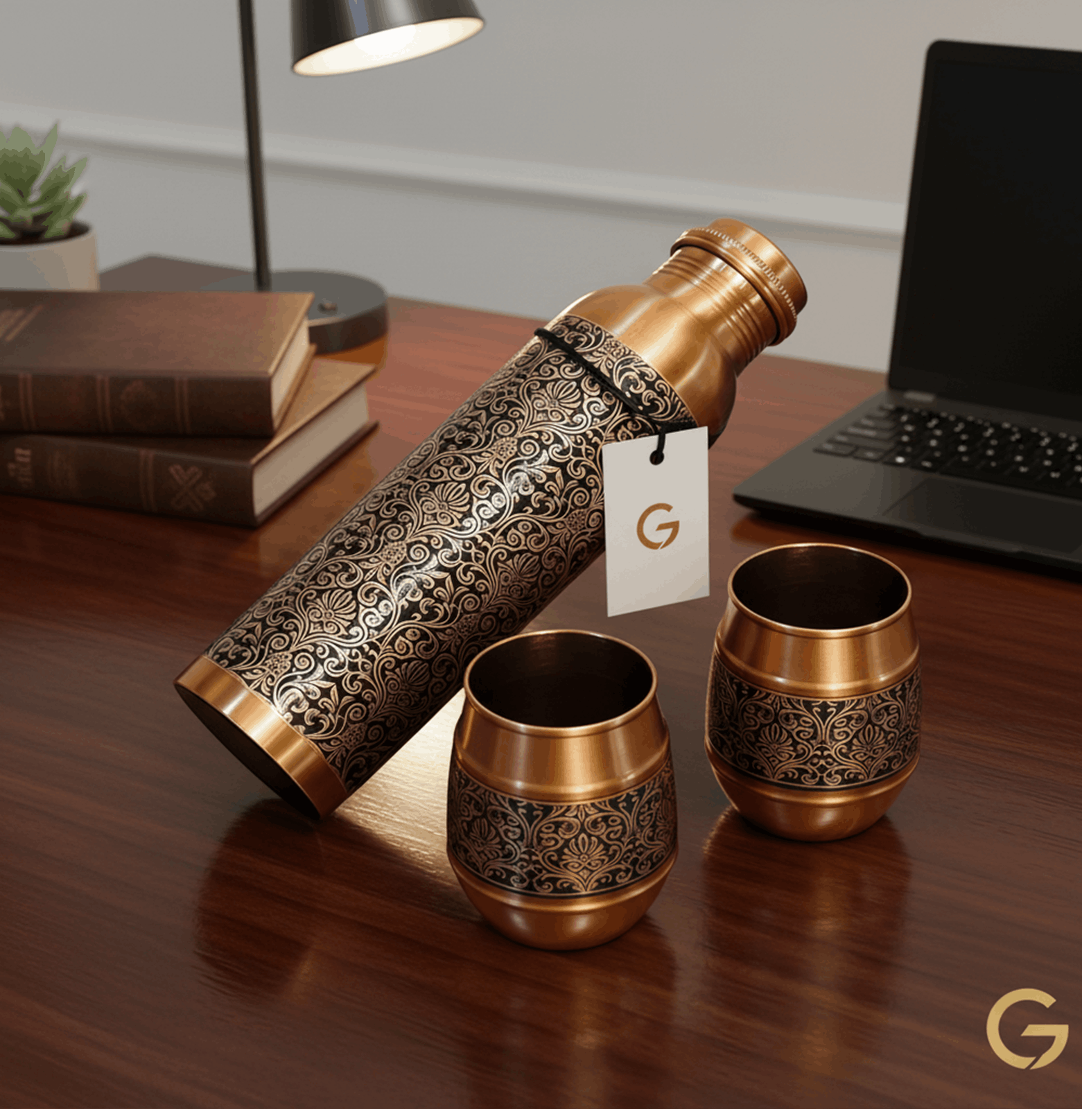 Experience the perfect blend of ancient tradition and modern sophistication. This handcrafted copper set is designed for wellness-conscious individuals who value both style and the holistic health benefits of copper-infused water.